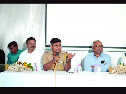 Senior police inspector Kumarsing Rathod addresses participants during the Knockout Digital Fraud awareness programme organised by Bajaj Finance Ltd in Gangapur on Thursday.
