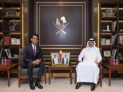 Doha [Qatar], April 13 : Sagar Adani, Executive Director of Adani Green Energy, met Sheikh Bandar Al Thani, Governor ...