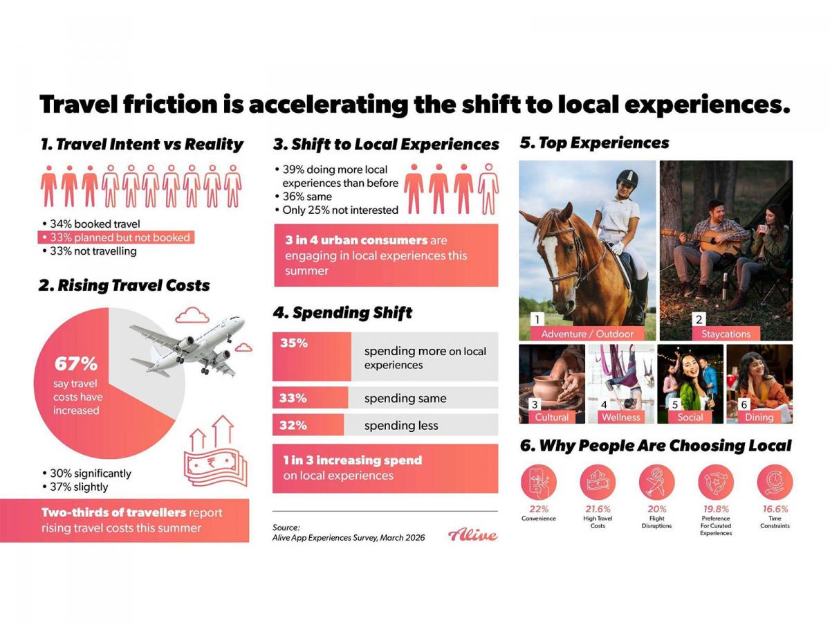 Bengaluru (Karnataka) [India], April 21: More than 75% of urban consumers are engaging in local experiences this summer, with 1 in 3 increasing their spending, according to a survey by Alive App, as rising airfares and travel uncertainty reshape leisure behaviour in India.