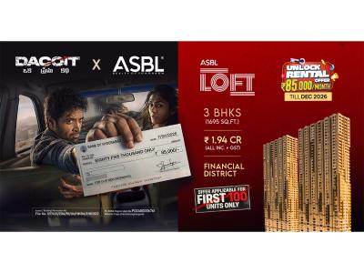 ASBL has taken a very different path to market its latest project. Instead of just following the usual way, they took a different and unique approach. This time, they joined hands with a movie called DACOIT - A Love Story starring Adivi Sesh, Mrunal Thakur, Anurag Kashyap and Prakash Raj. This is not a usual tie-up. ASBL changed movie posters into offer-based posters that speak directly to home buyers. The idea is simple. It is structured as a true "Dacoit Deal (steal deal)," where buyers get real financial benefit from day one.