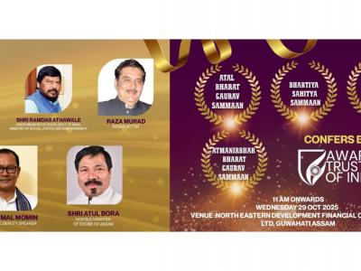 New Delhi [India], September 29: The Awards Trust of India (ATI), in association with Aura Profile Management Services, is all set to organize one of India's most prestigious recognition ceremonies — Atal Bharat Gaurav Sammaan, Bhartiya Sahitya Sammaan, and Ambedkar Bharat Gaurav Sammaan 2025. The grand event will take place at NEFDI, Guwahati, Assam on October 29, 2025, bringing together celebrated leaders, writers, change-makers, entrepreneurs, academicians, and social icons from across the country.