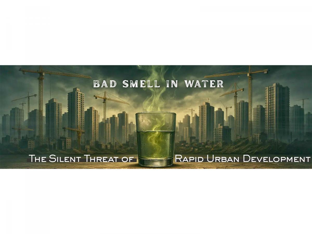 Urban development changes the natural landscape, creating an imbalance in water sources as construction sites and new infrastructure projects proliferate. These activities tend to interfere with groundwater recharge areas, sewerage systems, and natural water runoff, resulting in sewage seepage into water pipes that produce offensive smells, enhanced industrial effluent with chemicals and building materials entering the ground water, standing water near construction areas that promotes bacterial growth, and broken pipelines or tanks with stagnant water that allows contaminants to flow into clean water. The combined effect is a perceptible, unpleasant odor in the water, making it unclean for drinking, cooking, or washing.