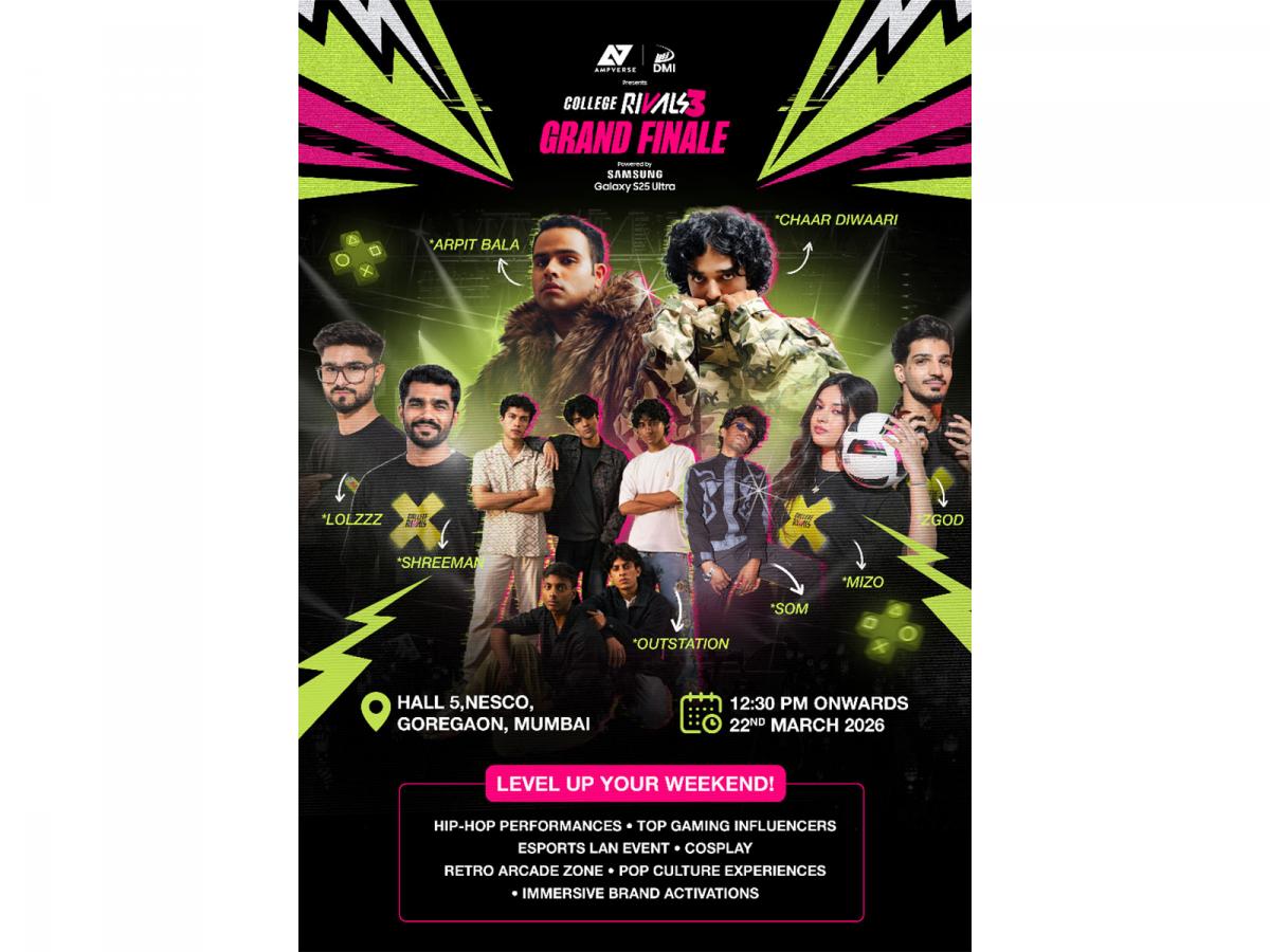 Mumbai (Maharashtra) [India], March 20: Known for dominating college fests and streaming charts alike, Chaar Diwaari, Arpit Bala, Soham (SOM) and Outstation will take center stage at the Ampverse DMI-owned College Rivals Season 3 Grand Finale powered by Samsung Galaxy S25 Ultra at Nesco Hall 5 on March 22.