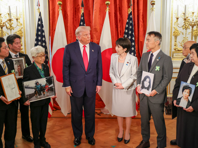 Trump, who met Emperor Naruhito after his arrival, on Monday met with the families of abduction victims and others along with Japan's Prime Minister Takaichi.