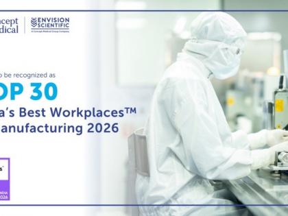 Surat (Gujarat) [India], February 02: Concept Medical Group, comprising Envision Scientific Pvt. Ltd. and Concept Medical Research Pvt. Ltd., has been recognized among the Top 30 mid-size manufacturing companies in India in India's Best Workplaces in Manufacturing 2026. This Great Place To Work® recognition highlights organizations that successfully balance manufacturing excellence with a high-trust, high-performance workplace culture.