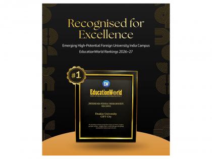 New Delhi [India], April 28: Deakin University has been ranked the #1 Emerging High-Potential Foreign University India Campus at the Education World Grand Jury India Higher Education Rankings 2026-27, reaffirming its leadership in delivering globally benchmarked, industry-aligned education in India.