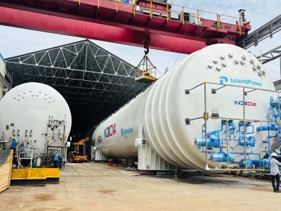 It added that the project "represents the largest installation of shop-built, double-walled vacuum insulated tanks globally," and noted that it is supplying "10 high-capacity tanks along with a regasification system to support island-based power generation."