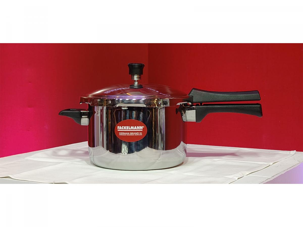 The Triply Pressure Cooker is engineered with a three-layer construction comprising 304 food-grade stainless steel, a pure aluminium core, and induction-compatible 430 stainless steel, ensuring efficient heat distribution and consistent cooking performance. The product is ISI certified, undergoes 100% leak testing at their respective factory, and is supported by a five-year warranty, reflecting Fackelmann's commitment to quality and safety.