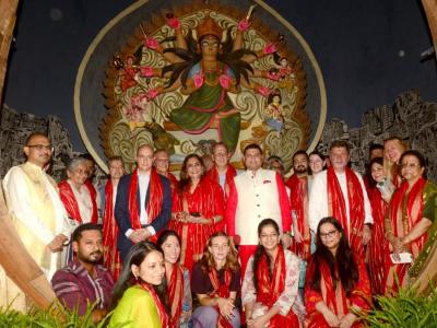 Sundeep Bhutoria, Chairman, Chaltabagan Durga Puja, with diplomats and consular corps from Britain, France, Estonia, Guatemala, Germany, Italy, Sri Lanka and Ukraine