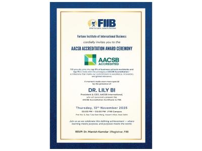 "Earning AACSB Accreditation is a proud milestone in FIIB's journey. The rigorous process was both a validation and a mirrorhelping us reflect deeply on what defines us as a women-led institution driven by purpose, inclusion, and authentic effort. It reaffirms our commitment to shaping responsible, practice-oriented leaders and contributing meaningfully to India's evolving business and innovation ecosystem. This achievement belongs to our entire communityfaculty, students, alumni, and partnerswho share our belief that business education must be a force for good and our resolve to keep learning and improving every day."