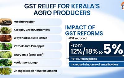 The GST rate cuts resulted in cost reductions of up to 11 per cent for cashew processing, for spices including Malabar pepper, and also for instant coffee, boosting margins for producers and processors across the state, according to an official statement.