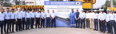 Kolkata, Feb 23 In keeping with the Union government's vision to develop India into a global shipbuilding hub, Garden Reach Shipbuilders and Engineers (GRSE) Limited -- a Public Sector Undertaking (PSU) under the Ministry of Defence -- on Monday, laid the foundation for the third multi-purpose vessel (MPV) it is building for Germany's Carsten Rehder Schiffsmakler and Reederei GmbH & Co. KG.