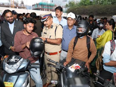 The event was graced by Dr. M. Ramesh, IPS, Commissioner of Police, Cyberabad, who emphasized the life-saving importance of wearing helmets for both riders and pillion passengers.