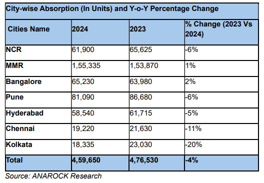 Housing unit sales decline by 4% in India but value increased by 16% in 2024: Anarock