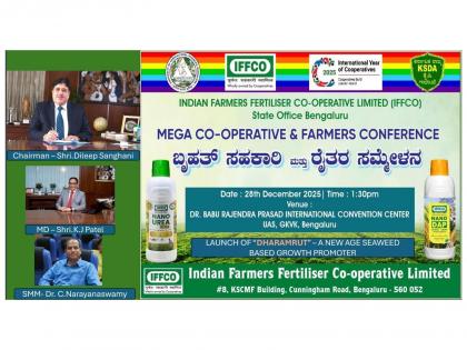 Bengaluru (Karnataka) [India], December 27: IFFCO is set to unveil its latest innovation, Dharamrut, a natural botanical seaweed extract enriched with Amino Acids and Alginic Acids, during the Mega Cooperative & Farmers Conference on 28th December 2025 at the Dr. Babu Rajendra Prasad International Auditorium, GKVK, Bengaluru under the leader ship of Karnataka SMM Dr C Naryanaswamy . The large-scale gathering is expected to host over 3000 farmers and cooperators physically, with a simultaneous live telecast across all districts of Karnataka, ensuring widespread participation from the farming community. A Natural Botanical Seaweed Extract to Strengthen Sustainable Farming Practices Across Karnataka