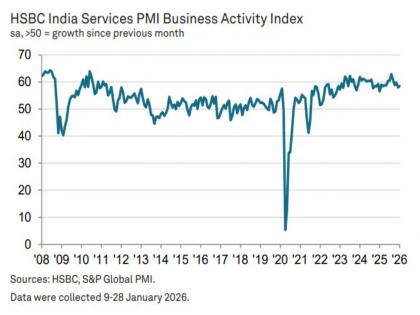 New Delhi [India], February 4 : India's services sector activity strengthened in January, with the Services Purchasing Managers' Index (PMI) rising to a two-month high of 58.5, while the Composite PMI, which combines manufacturing and services, increased to 58.4, according to data released by HSBC.