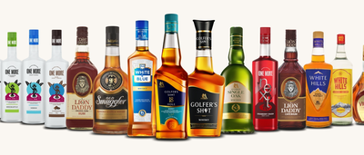 Its brand portfolio includes Golfer's Shot (premium whisky), White & Blue (blended whisky), White Hills (regular whisky), and One More (vodka), catering to a wide range of consumers across India.