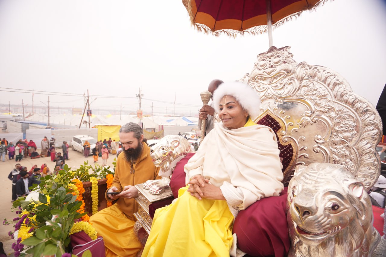From her Shakti Dham Ashram camp in Sector 17 of the Kumbh Nagari, Jagadguru Sai Maa participated in the grand event with traditional fanfare along with her 9 foreign-origin Mahamandaleshwars and hundreds of followers from various countries who have faith in Hinduism.