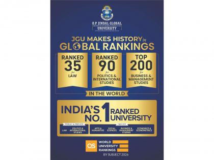 London [UK], March 26: O.P. Jindal Global University (JGU) has achieved a historic and global milestone in the QS World University Rankings by Subject 2026, delivering exceptional performance across Law, Politics & International Studies, Business & Management, Arts & Humanities, Economics, and Social Sciencesfirmly establishing itself as one of India's leading multidisciplinary global institutions and a rising force in international higher education.