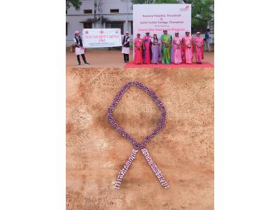 The highlight of the event took place at the Sarah Tucker College grounds 650 Youth Red Cross students forming a massive human ribbon to symbolize cancer awareness. This visual formation served as a powerful symbol of solidarity and a collective pledge to raise awareness about oncology care and healthy lifestyle choices.