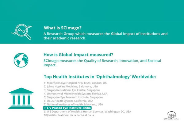 "Research and innovation have been integral to LVPEI from its inception. SCImago Institutes Rankings is among the most comprehensive rankings of worldwide universities and research institutions. It is very encouraging to be ranked as one of the top 10 global eye research institutions. Being the first Indian eye care institution to feature on this list is a matter of pride and a major milestone for Indian eye and medical research," says Dr Gullapalli N Rao, Founder Chair of L V Prasad Eye Institute.