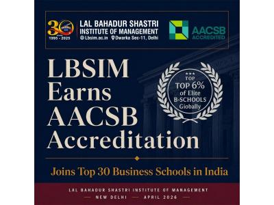 Lal Bahadur Shastri Institute of Management (LBSIM), New Delhi, has officially been awarded AACSB accreditation by AACSB International - the world's oldest and most rigorous standard-setting body for business education, founded in 1916. AACSB accreditation is a global quality benchmark - not an opinion, not a survey, but a structured, peer-reviewed determination of institutional excellence. It is earned through a multi-year, review process conducted by academic leaders from other globally accredited peer institutions. The process examines strategic alignment with institutional mission, learner success, thought leadership, and societal impact. Schools that earn the credential must undergo a Continuous Improvement Review (CIR) every six years to maintain it.