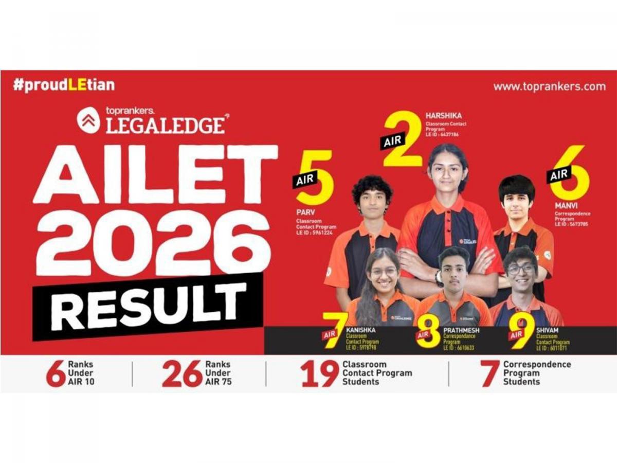 New Delhi [India], December 20: The AILET 2026 results have once again highlighted how focused preparation, consistent mentorship, and smart mock-test strategy can translate into exceptional outcomes. This year, LegalEdge by Toprankers celebrates a strong national performance with multiple top ranks and an impressive spread across high-performing candidates, making it a proud moment for the entire LegalEdge community.