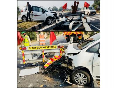 At exactly 9:28 AM, a Trailer Truck Mounted Attenuator (TTMA)—engineered by Germany's Nordic Traffic Safety under Managing Director Mr. Andreas Lau and assembled in Bhilai, Chhattisgarh—absorbed an impact that should have killed dozens.