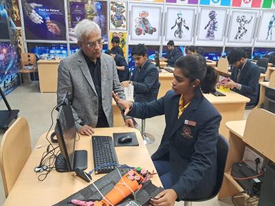 Additionally, coding education begins from Class 1, allowing young learners to develop structured thinking abilities at an early age. Students start with visual and block-based programming and gradually advance to more complex programming languages and AI-based applications. This early exposure ensures holistic cognitive development and nurtures students as creators, innovators, and ethical digital citizens.
