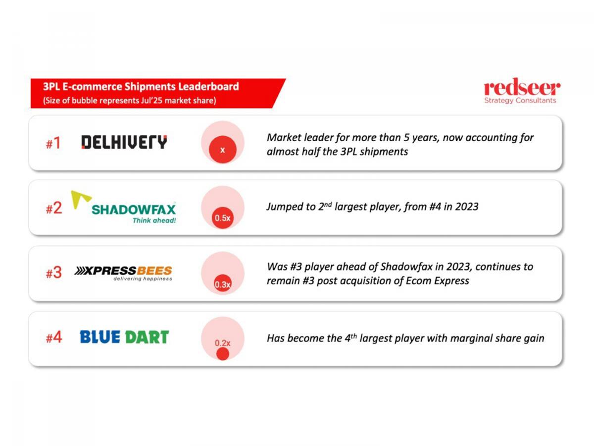 "India's 3PL industry is entering a phase of scale and stability. The billion-parcel milestone will be achieved not just through growth, but through disciplined economics and smarter partnerships. The evolving leaderboard, where Delhivery leads and challengers like Shadowfax rise, shows how dynamic this market remains," said Chhavi Singh, Associate Partner, Redseer Strategy Consultants.