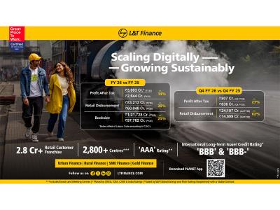 Commenting on the financial results Mr. Sudipta Roy, Managing Director & CEO, LTF, said, "FY26 has been a good year for us, despite significant headwinds in our microfinance business in the initial months of the year and the end of the year closing with geopolitical tensions. Through the course of the year, we remained steadfast in our approachtightening credit and risk administration frameworks, strengthening collections infrastructure, accelerating our AI-led technology transformation and continuously focusing on growth across all our business lines. On the microfinance business, our focus was on navigating the cycle with prudence and our efforts have yielded results, with business parameters across both disbursements and collection efficiencies now reverting to near pre-crisis levels, giving us confidence that FY27 will be a stable and productive year for this segment.