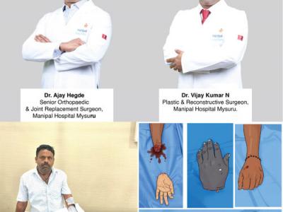 Mysuru (Karnataka) [India], December 5: A multidisciplinary team at Manipal Hospitals, Mysuru successfully performed a complex hand replantation surgery, restoring hope and function to a young male patient whose hand was completely severed in an industrial accident.