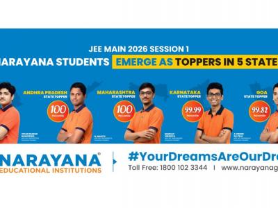 New Delhi [India], February 27:Narayana Educational Institutions recorded an exceptional performance in JEE Main 2026 (Session 1), with three students securing a perfect 100 percentile and five emerging as State Toppers across Andhra Pradesh, Telangana, Maharashtra, Karnataka and Goa, further strengthening its standing in competitive exam preparation.