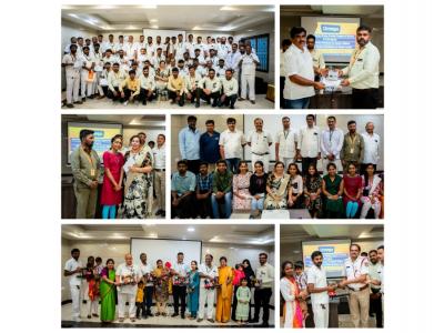 In addition to the safety training program, Omega Cabs stepped towards social initiative also. Scholarship Award for Drivers' Children and Free tailoring machine distribution for selected drivers' families. This scholarship is exclusively available to children of cab drivers pursuing higher education. Lishita Mudduraj (SSLC 97%), Dimple Suresh Maney (SSLC 93%), Unnati Ravindra (SSLC 89%), Niveditha Ramakrishna (SSLC 80%), Dhruva Ramesh (PUC 89%), Mathew Arockia (PUC 92%), Prithvi Rajesh (PUC 82%), Shwetha Raganna (B.Com 91%), Mahima Shyam (B.Com 89%), Dhiya Suresh Maney (MBBS 2nd Year 71%) got a scholarship award from Omega. This scholarship award to recognise their achievement and motivate others to achieve success. Along with this initiative free sewing machines were distributed to the families of selected cab drivers. The aim of this free sewing machine distribution program is to support their families by providing earning options and contribution to the empowerment of women. Basavanna, Ravish, Mallesh, Niranjan, Santosh, Kasif family got this free Tailoring machine.