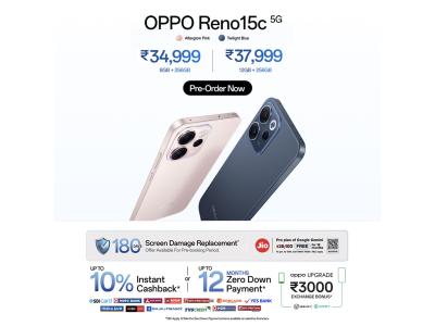 The Reno15c is available at INR 34,999 for the 8GB + 256GB and INR 37,999 for the 12GB + 256GB variant. The OPPO Reno15 Series is available for purchase with exciting offers on Amazon, Flipkart, Mainline Retail Outlets and OPPO E-store.