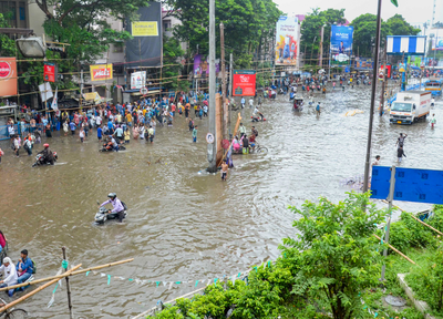 Amid record overnight rainfall, Kolkata and its surrounding areas were submerged under knee-deep water on Tuesday, disrupting daily life. Over 300 mm of rain was reported between midnight to 5 a.m. across the city.