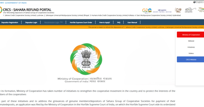 In compliance with the Supreme Court’s order, an Online Portal “CRCS-Sahara refund portal” https://mocrefund.crcs.gov.in was launched on July 18, 2023 for submission of claims by the genuine depositors of four Multi-State Cooperative Societies of Sahara Group, namely; Sahara Credit Cooperative Society Ltd., Lucknow, Saharayn Universal Multipurpose Society Ltd., Bhopal, Humara India Credit Cooperative Society Ltd., Kolkata, and Stars Multipurpose Cooperative Society Ltd., Hyderabad for refund of their legitimate deposits.