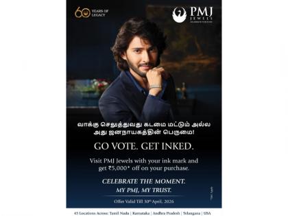 Chennai (Tamil Nadu) [India], April 27: In a heartening initiative that blends commerce with civic duty, PMJ Jewels had announced a special election season scheme encouraging citizens of Tamil Nadu to actively participate in the democratic process. With the Tamil Nadu State Assembly Elections that were scheduled for April 23, 2026, the leading jewellery brand made an appeal to voters across the state with a powerful message: “Go Vote. Get Inked. Celebrate the Moment.”