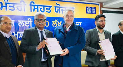The agreement was signed by Chief Executive Officer (CEO) State Health Agency, Sanyam Aggarwal and Executive Director of United India Insurance, Mathew George, in the presence of State Health and Family Welfare Minister Balbir Singh.
