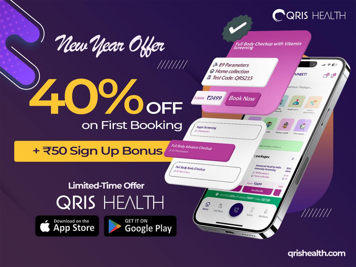 Under the New Year campaign, users registering on the Qris Health app can avail a flat 40% discount on their first diagnostic booking, along with a Rs. 50 signup bonus credited instantly at the time of registration. The signup bonus can be used immediately on the first booking itself or redeemed on future test bookings, offering added flexibility to new users.