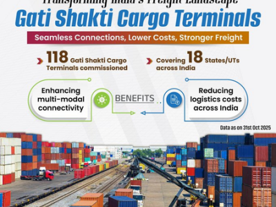 Indian Railways has approved 306 GCTs, with a combined capacity of 192 million tonnes per annum, of which 118 have already been commissioned, while private investment of around Rs 8,600 crore has been mobilised under the GCT Policy.
