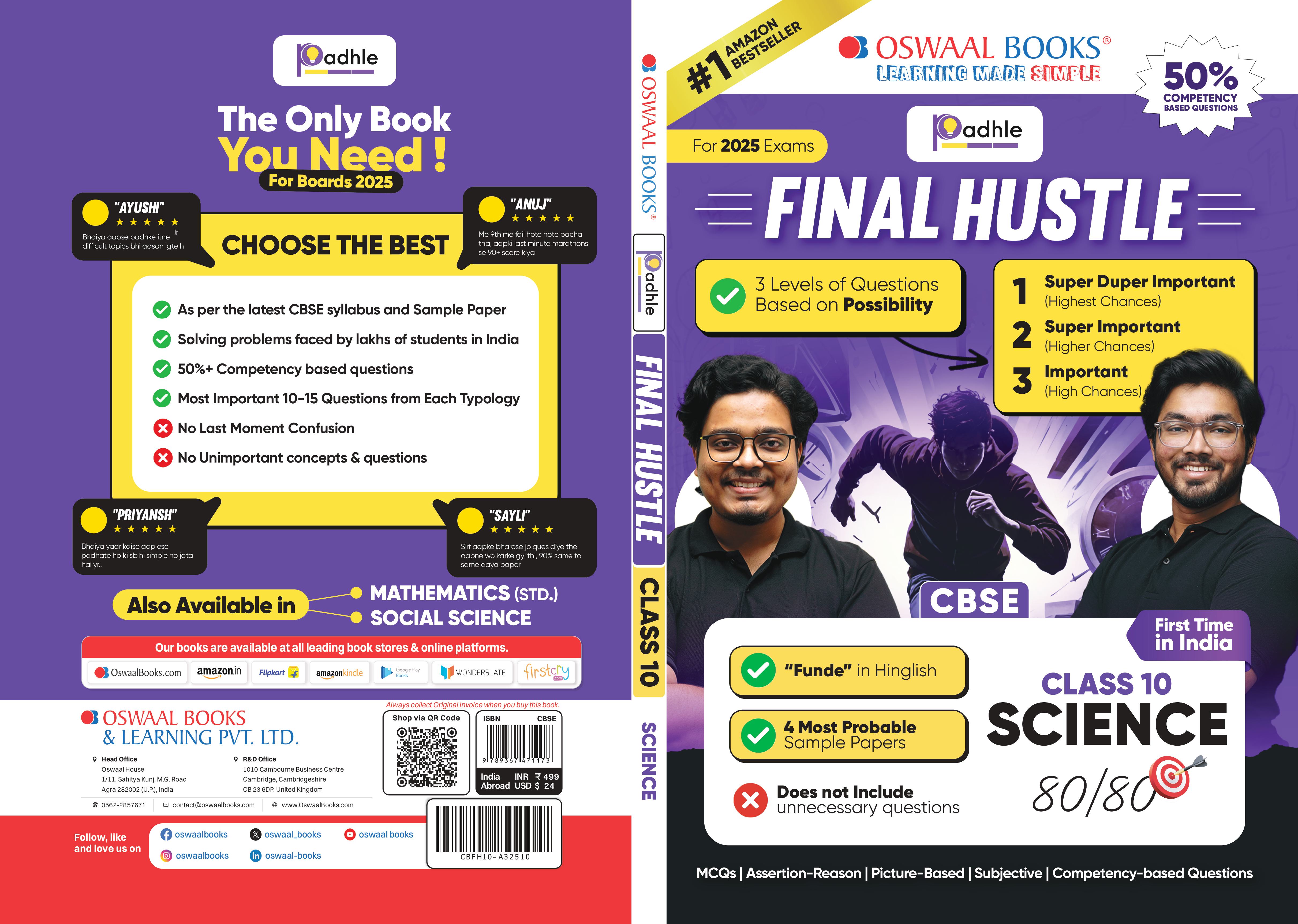 Final Hustle is not just another book but a comprehensive guide crafted with the real needs of students in mind. Designed to help Class 10 students maximize their board exam performance, the book offers: Three Levels of Question Categories: Questions are meticulously divided into three probability-based categories Super duper Important, Super Important, and Important guiding students to focus on the most likely exam questions. They have also included Four Exam-Ready Sample Papers which are developed with precision, these sample papers are claimed to be the most probable questions for the board exams.