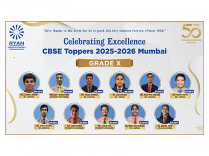 Mumbai (Maharashtra) [India], April 21: The Ryan Group of Schools is immensely proud to announce the outstanding achievements of its students in the recently declared CBSE Class 10 Board Examinations. These outstanding results come as the group celebrates its Gilden Jubilee - 50 glorious years of transforming lives through quality education. The Ryan Group umbrella have once again registered phenomenal results, with several students securing top ranks across the region. Students Shine with Exceptional Academic Performance.
