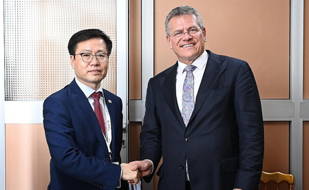 During Friday's meeting, Yeo and Sefcovic discussed cooperation in critical minerals, as both Korea and the EU have limited mineral production infrastructure, and agreed to bolster communications on the issue amid ongoing global supply chain disruptions.