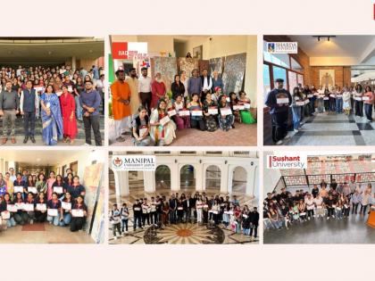 Across campuses, the outcomes manifested in diverse forms. Over 3,000+ students across 40 institutes—such as Manipal University (Rajasthan), Amity University (Uttar Pradesh and Madhya Pradesh), KIIT School of Architecture and Planning (Odisha), Sushant University (Haryana), Indian Institute of Art and Design (Delhi), and the Institute of Indian Interior Designers (Hyderabad)—participated in the campaign, spanning North, South, East, and West India. The engagement was intentionally structured as a hands-on experience, enabling students to interact directly with discarded material and reimagine its potential beyond conventional applications. Students created murals, installations, and functional design interventions that became integral to their immediate environments. Many of these works continue to reside within campus spaces, subtly reinforcing a culture of reuse and embedding sustainability into everyday interactions.