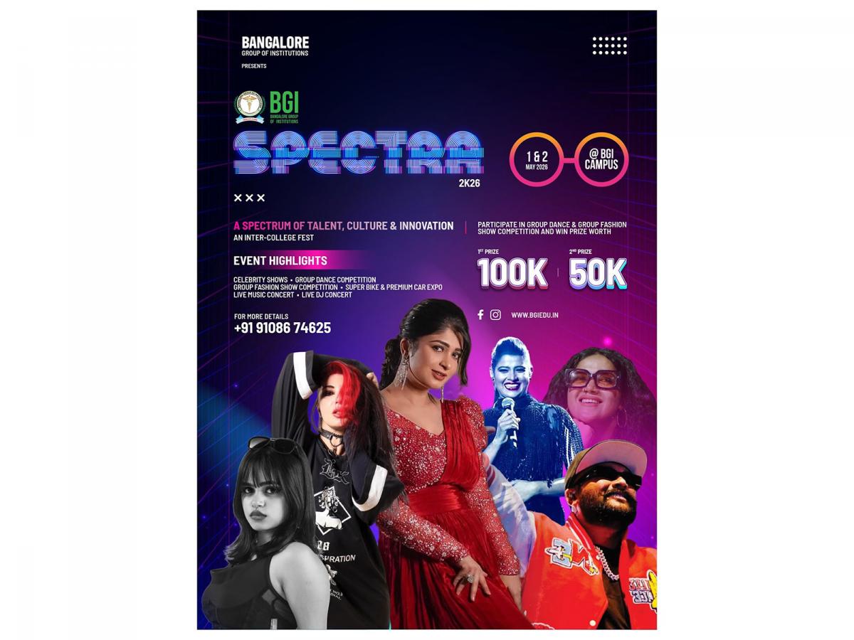 Bangalore (Karnataka) [India], April 27: The heartbeat of the city's student life is about to get a whole lot faster. The Bangalore Group of Institutions (BGI) has officially pulled back the curtain on Spectra 2026, a massive two-day inter-college extravaganza set to take place on May 1 and 2.