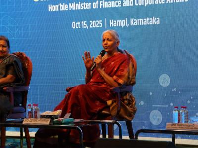 Hampi (Karnataka) [India], October 16 : The Union Minister of Finance and Corporate Affairs, Nirmala Sitharaman, interacted with interns of the Prime Minister Internship Scheme (PMIS) at Hampi, Karnataka on 15th October, 2025.
