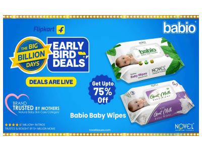 Mark your calendarsBig Billion Days starts 23rd September 2025. Your favorite brand, Novel Babio Baby Products, including Babio baby wipes, Goat milk baby wipes and more, is making that worry a thing of the past with up to 75% off on Flipkart. Parents across the country can now choose wipes enriched with aloe vera and chamomile, trusted for their soothing and natural care, with cost-effectiveness.