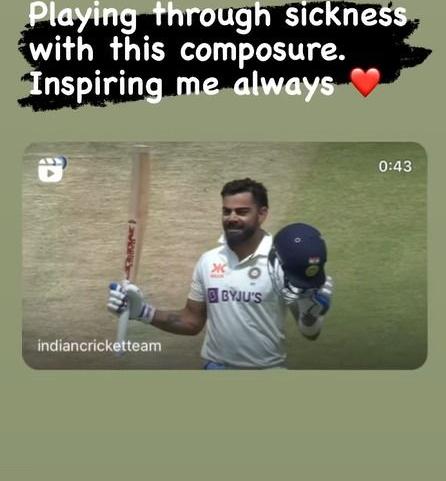 Meanwhile, it has now emerged that Kohli played the marathon innings in Ahmedabad with a fever. Bollywood actor Anushka Sharma took to her Instagram handle to reveal that Kohli played through sickness. She shared a story on her official account, where she wrote, "Playing through sickness with this composure. Inspiring me always," Anushka wrote. Kohli did not come out to the field during Australia's second innings on Day 4. Suryakumar Yadav took his place for the remaining overs in the day.