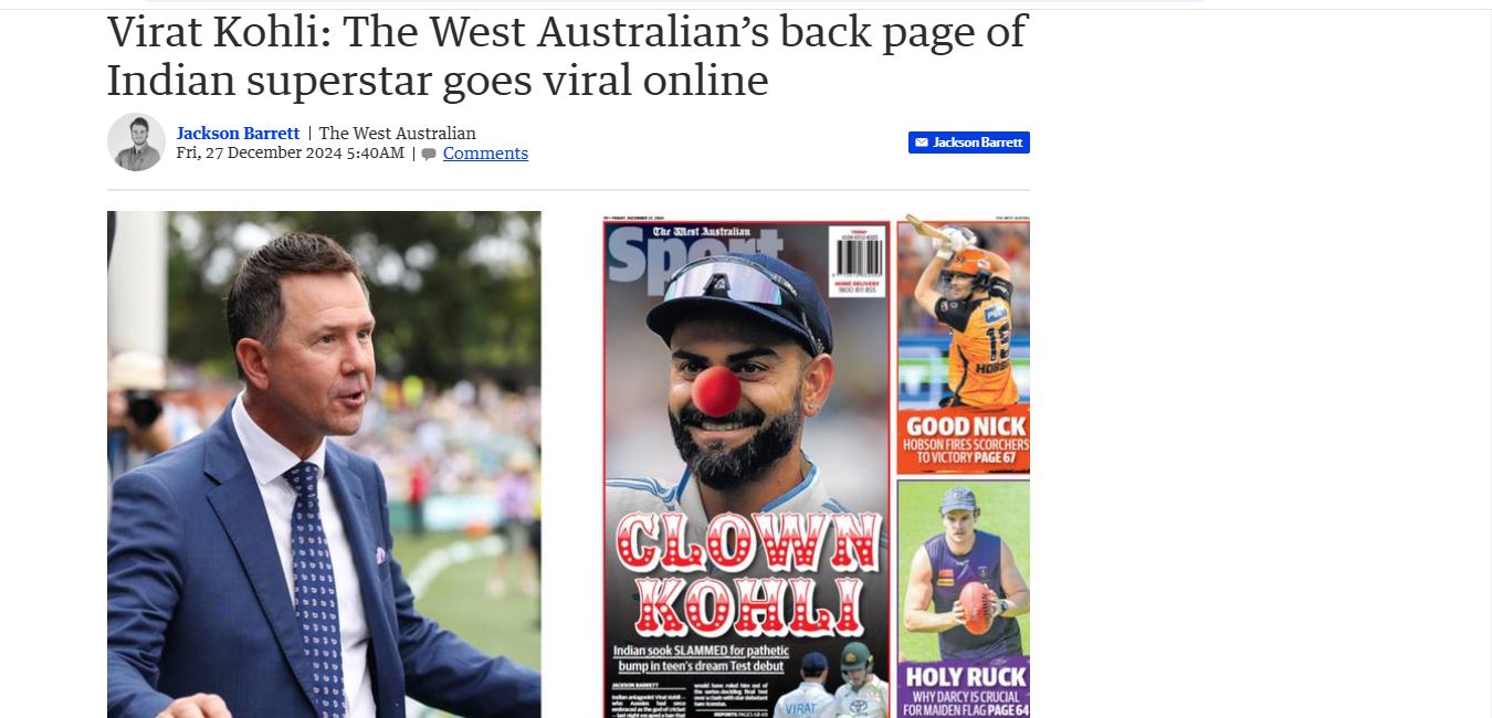This incident opened the floodgates of some negative press for Virat from Aussie media. The back page of The West Australian newspaper, calling Virat a "clown" has gone viral on social media.